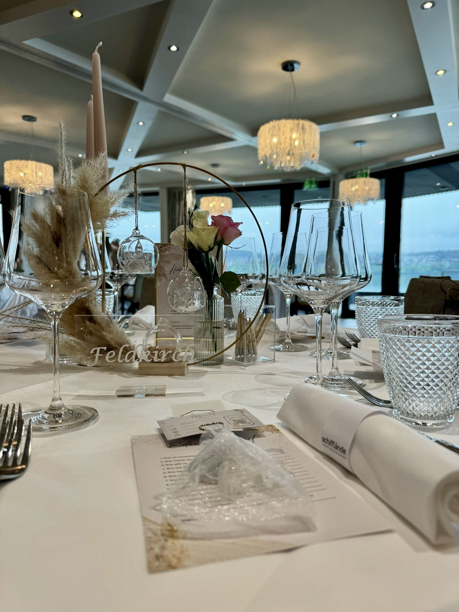 Die Dekoration kann auch als Aufsteller oder Tischnummer bei Hochzeiten verwendet werden und ergänzt das Tischkonzept auf harmonische Weise.